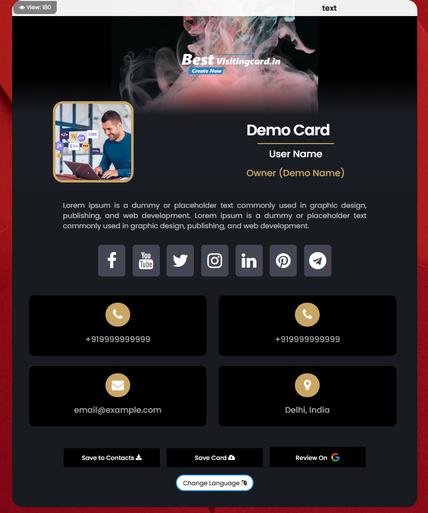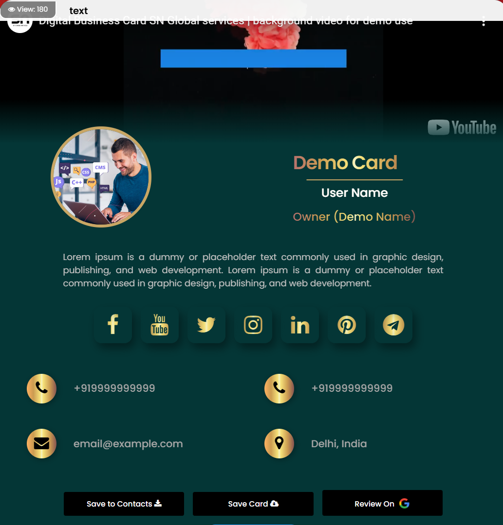 Once card created and activated its ready to share.