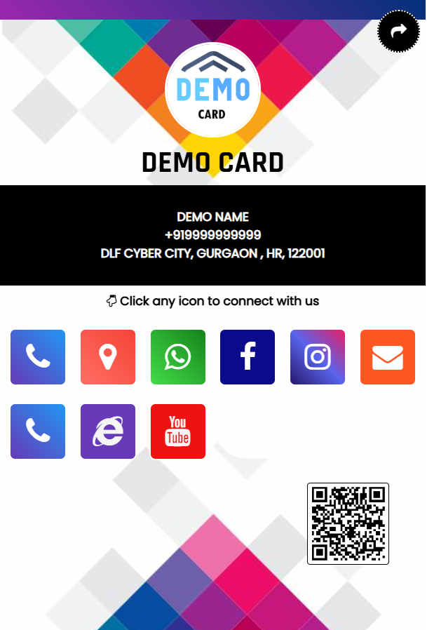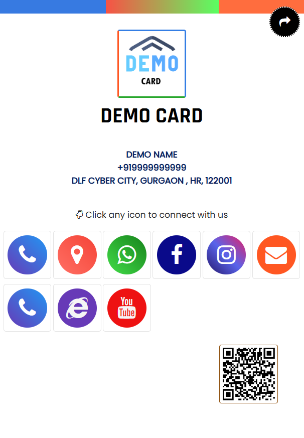 Once card created and activated its ready to share.