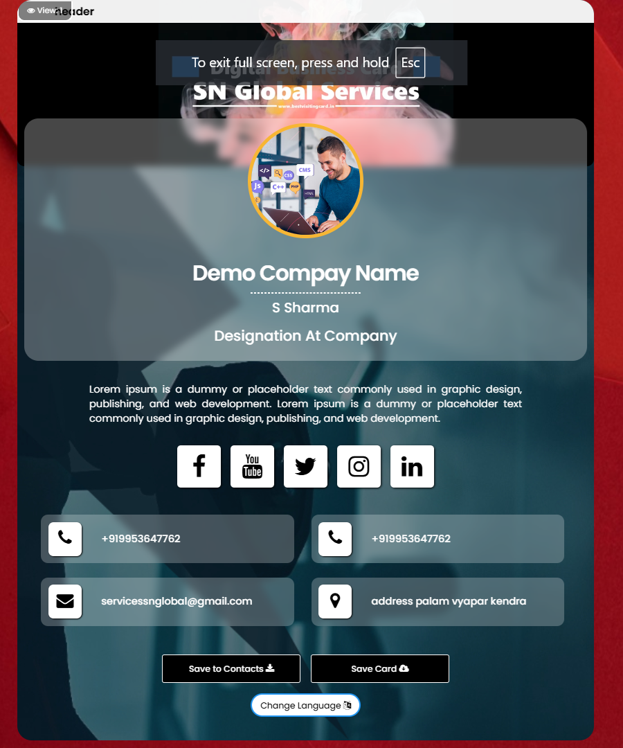 Creating Business card is easy now. Click here to start creating your first card.